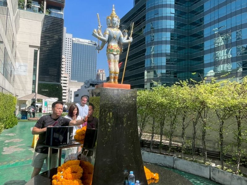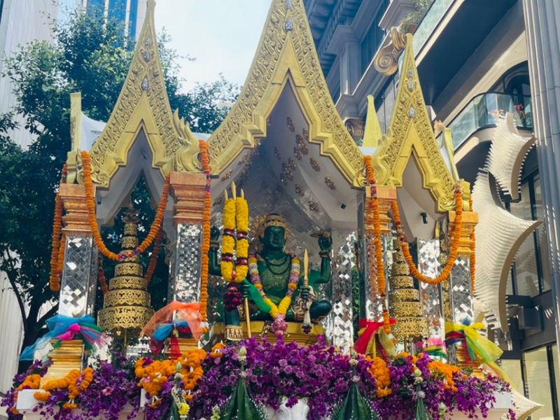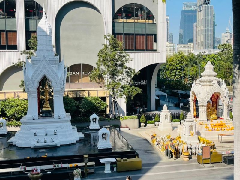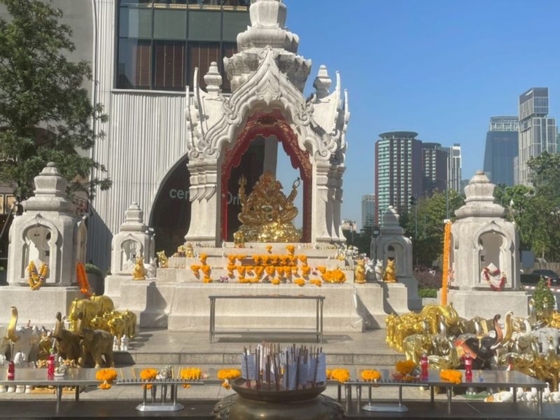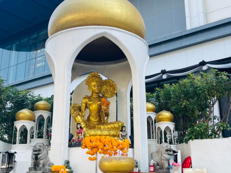 In this area, spirituality and business go hand in hand. The tradition is often linked to the story of the Erawan Shrine, which was built during the construction of the former Erawan Hotel to resolve a series of setbacks. After that, the project became successful. Since then, many buildings here have followed the practice of installing shrines as symbols of protection and prosperity.