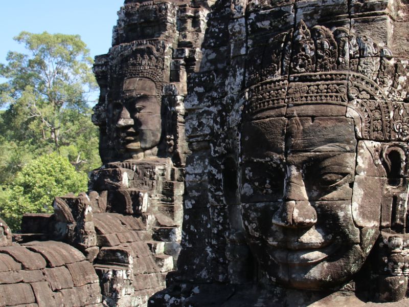 The presence of the stone faces, over 200, have led scholars to theorize about who the faces represent. One popular theory states that the stone face is a representation of King Jayavarman VII himself, due to the similarity of the faces to statues of the king. Another theory posits that the face represents the bodhisattva Avalokiteśvara or Padmapani, who is believed to be the embodiment of compassion of the Buddha. Some have also speculated that the king identifies himself as the bodhisattva.