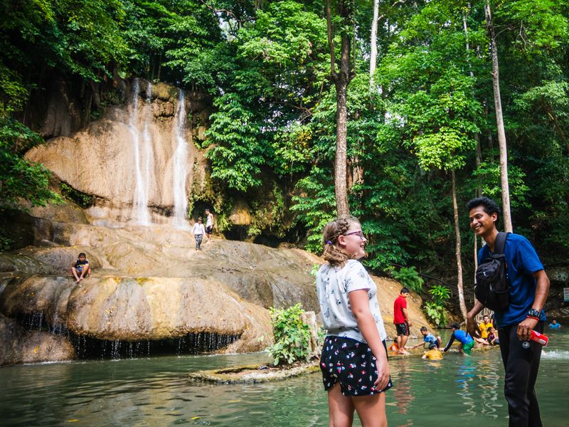 If you are a fan of nature, the first level of Erawan Waterfall is definitely for you. Strolling along the trail, you will come across a super big pond full of countless fish (But, don’t worry. They aren’t scary, just a bit ticklish). If you are more of an adventurer, we think the second tier “Wang Macha” is perfect. Here, you will find a small cave. Plus, the pond at this level is suitable for swimming as there are basins with Mahseer! Want more fun? Go down the slide at the 4th tier or “Ok Phisua”. However, note that each level needs a 20 to 50 metres hike, so it would take you around 3 hours to get to the top. So, charge up your energy by dipping yourself in the cool water before heading out to the next level!