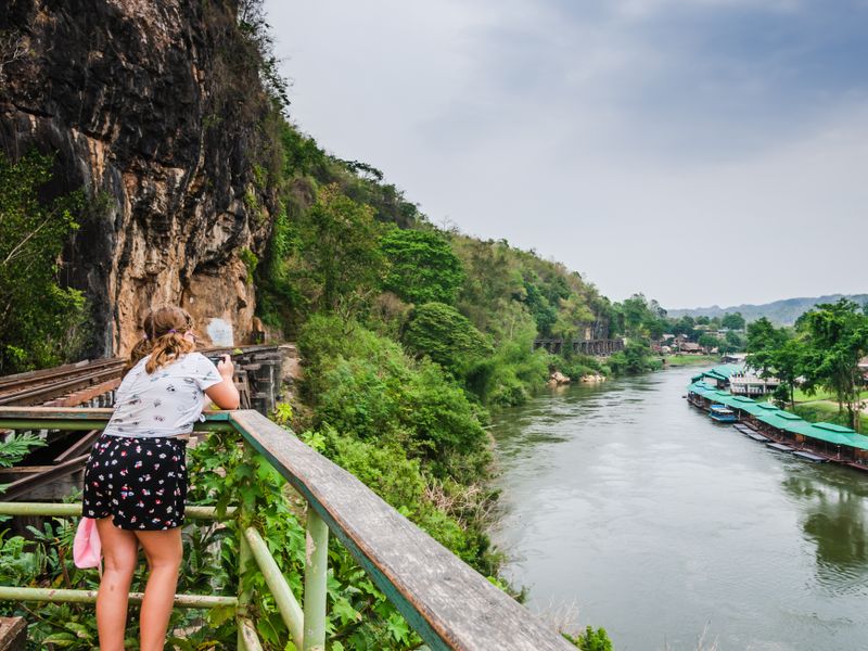 Though we all locals know that the area around Krasae Cave is called “Koang Morana”, meaning the death turn, the view from here is breathtaking and is definitely worth visiting. Walking to the front of the cave, you will come across the scenic landscape of River Kwai below your feet. Plus, it would be a bit unfair to not mention the abundant wilderness surrounding the cliff. And yes, if you cannot get enough just seeing the greenness from the top, how about going on some fun adventures among mother nature? Let’s get off the stunning train track and explore the serene vibes! Hop on a boat ride along River Kwai Bridge, it’s the perfect moment to get an instagrammable shot with a stunning backdrop!