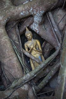 Just after entering Wat Bang Kung, stands the iconic Sanctuary that is hidden under the branches and roots of trees. Not so surprisingly, the hall is vastly known as Bot Prok Pho (meaning sanctuary covered up by Bodhi tree). Inside, enshrined the famous golden Nila Manee Buddha Statue. It is not so unusual that in such a peaceful place, many Thais visit the sanctuary daily to worship the figure. And if you have some time, do not forget to gild the gold leaf on the statue for good luck like the locals do!
