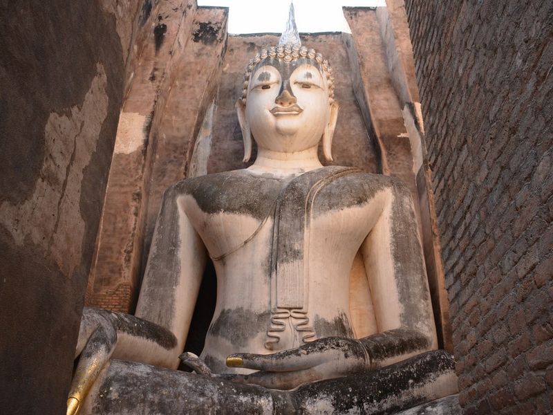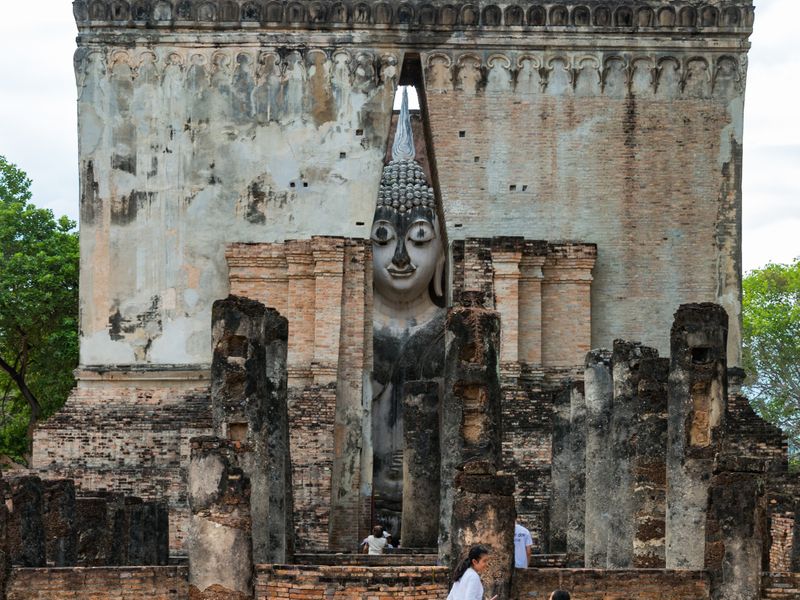 It is a pity that Wat Si Chum now does not allow visitors to enter the sanctuary closely, to prevent the wall from being scratched and causing damage to the history. But, you can still visit other areas within the temple. And, if arriving at Wat Si Chum, of course, you will also visit the Sukhothai Historical Park with literally endless things to do and to see.
