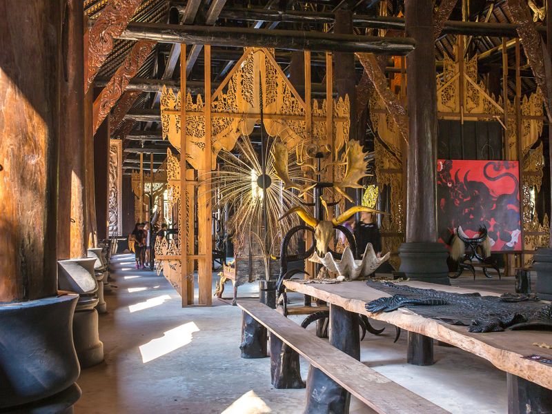 Born in Chiang Rai, the late great national artist Thawan Duchanee made a tremendous influence on the Thai art scene. One of his most impressively eerie works is Black House. The museum hosts 40 Northern Thai temple-like buildings, each one decorated with animal remains that the modern Buddhist artist collected. Black House isn’t just about its dark color scheme but also the dark but undeniably true concepts of life and death. Skins, skulls, horns, bones and other animal parts symbolizes the inevitable death that everyone must face and can be interpreted in numerous different ways.