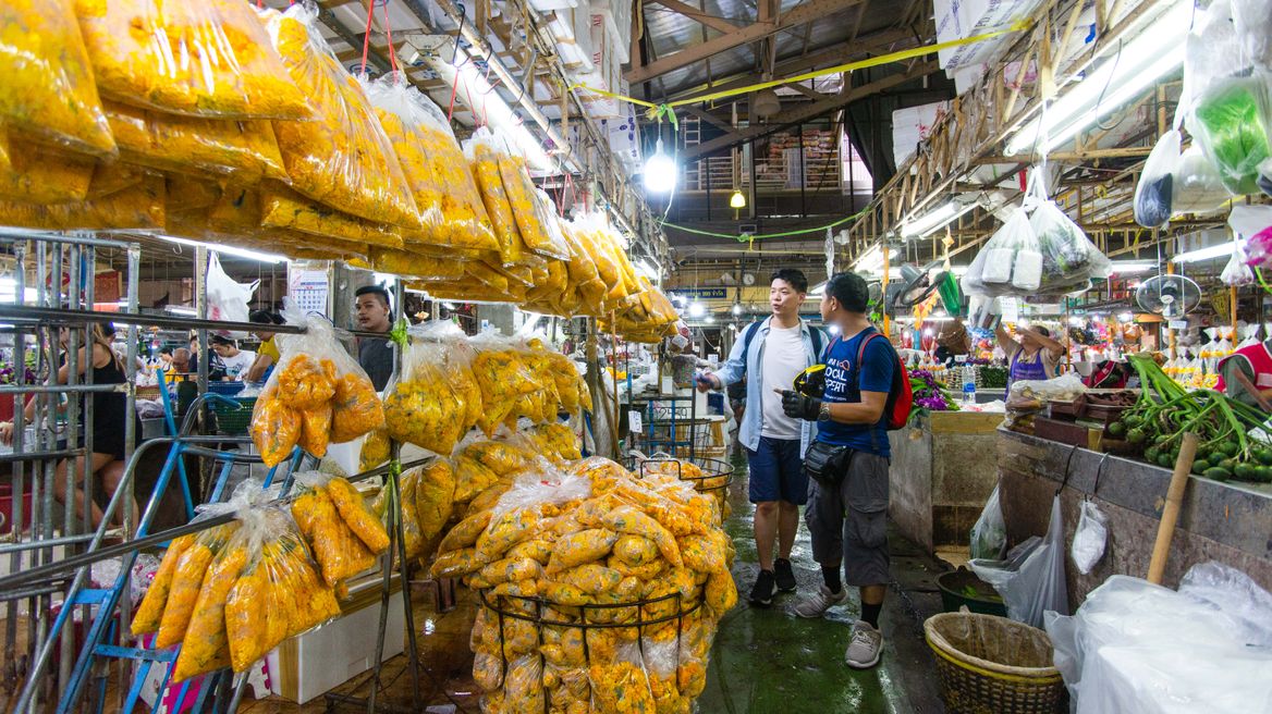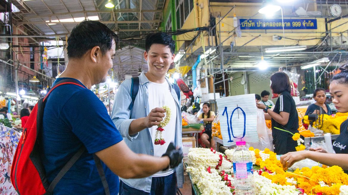 Explore the lively Flower Market — Bangkok’s most colorful and fragrant spot! Walk among stalls overflowing with orchids, roses, and marigolds, and see how locals create flower garlands for temples and special occasions.