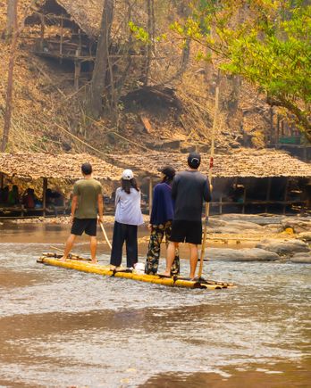 We'll embark on an hour drive from Chiang Mai City to Mae Wang. Once there, we'll head up to the rafting river, a journey that will only take around 30 minutes. Each raft has a capacity of about 3-4 people, depending on weight distribution. You're welcome to enjoy the rafting experience either by yourself or with the assistance of a guide if you prefer. Get ready for an unforgettable experience that will leave you amazed and smiling!