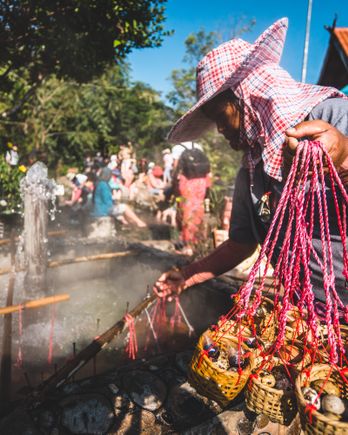 Let's begin by visiting a hot spring. Chiang Mai is known as one of the best places to enjoy the hot spring in Thailand. You can relax by dipping your feet into the warm water.