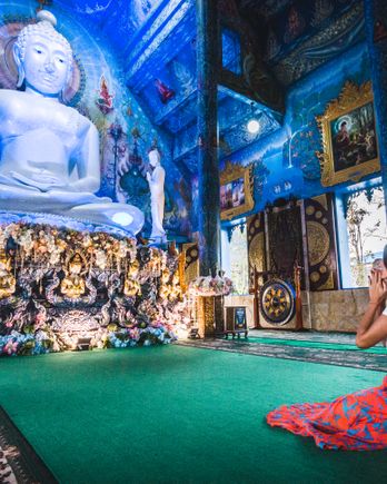 Visit some of most beautiful temples in the world, one all white and one all blue! Amaze yourself with the splendid art temples with us! We will start of with Wat Rong Kun, the famous white temple delicately designed by Thailand's most renown artist. Then, we will visit Wat Rong Suea Ten, and enjoy the blue shade of the north!