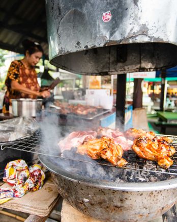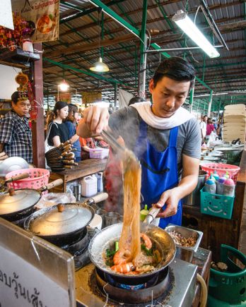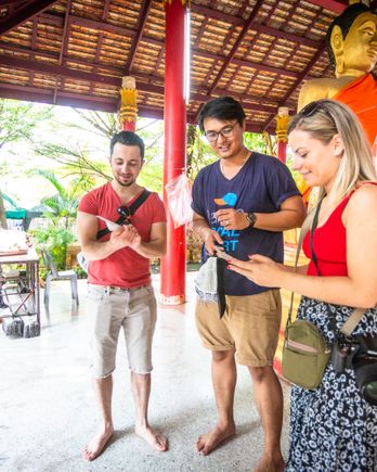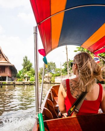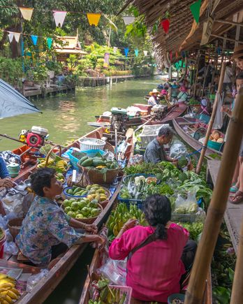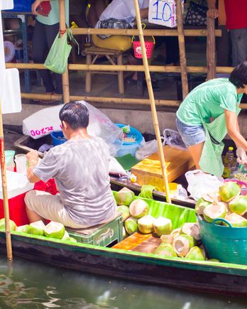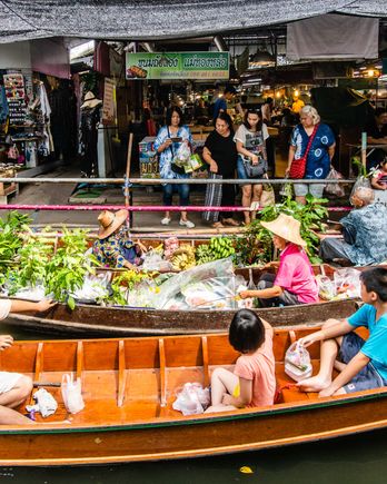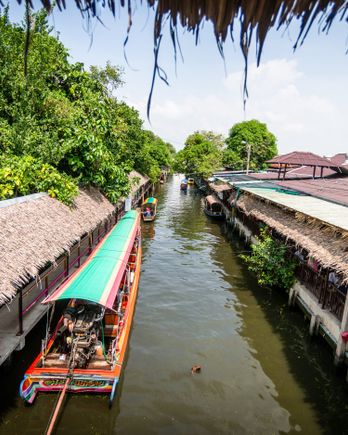 Want to explore a floating market, and avoid the crowds? At Khlong Lat Mayom Floating Market, you'll experience one of Bangkok's most authentic floating markets and a foodie's paradise at the same time. Here, we'll ride a boat along the leafy canal at the back of local homes, and sample tasty Thai food around the market. Let's chill out!