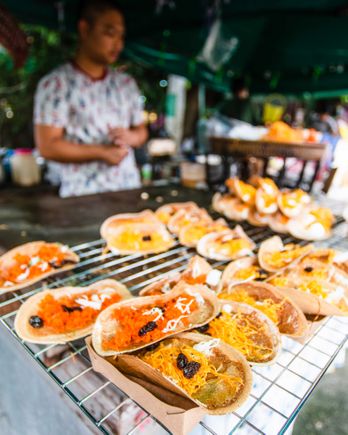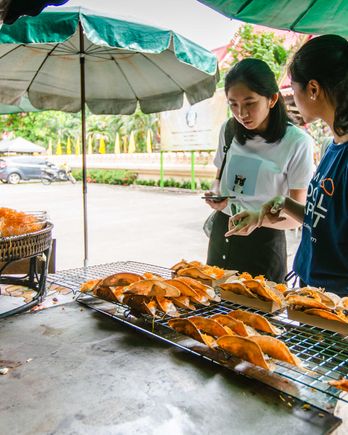 After checking out the local atmosphere on the boat, we'll come back to Khlong Lat Mayom Floating Market. Here, I'll let you try many types of local food and snacks, and you can get some unique souvenirs. If you don't know which dishes or snacks to try, don't worry! I'm here to give you recommendations. You can also buy fresh produce from local boat vendors if you wish to cook something back home!