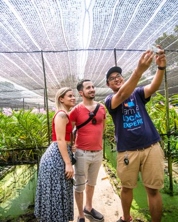 We'll ride the boat to Wat Saphan community, where you'll see even more local people going about their day. Then, we'll take you to a nearby local orchid farm to check out more of the local community.