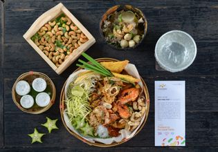 Let's enjoy Pad Thai in Thai-style bamboo dish and other delicious stuff like noodles served in coconut shell in bowl. You gonna love it with an extra spicy taste.