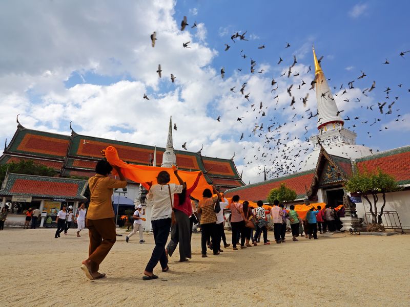 Every Saturday evening, the whole main road in front of Wat Phra Mahathat is transformed into a lively and bubbling walking street. Local youth music bands, handmade products, and mostly authentic Southern delicacies are the main draws. Topping the local must-try list are Khanom Chin (fermented vermicelli) with a plethora of spice-filled curries, and your favorite Roti. The fun part is that you won’t just find a stall of this heavenly dessert, but a number of proper Roti places with a huge rain of fillings and the mouthwatering Muslim tea on the side.