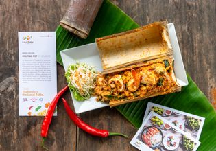 atRuen Chai NamHor Mok Pla Phao (Steamed Seafood With Curry Paste in Bamboo Can)