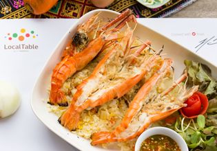 Cheese Fried Rice with Grilled Shrimps