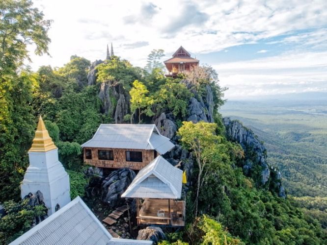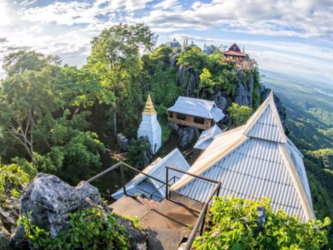 Climb to the top of Mount Phu Pha Daeng (Red Cliff) which cover with many small white amazing pagoda which built by the faith of monk and villagers. See the Bird Eyes View with 360 degrees scenic point.