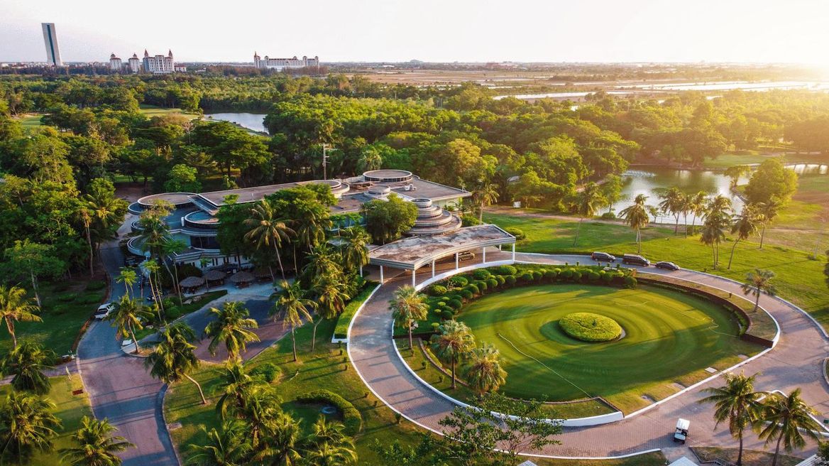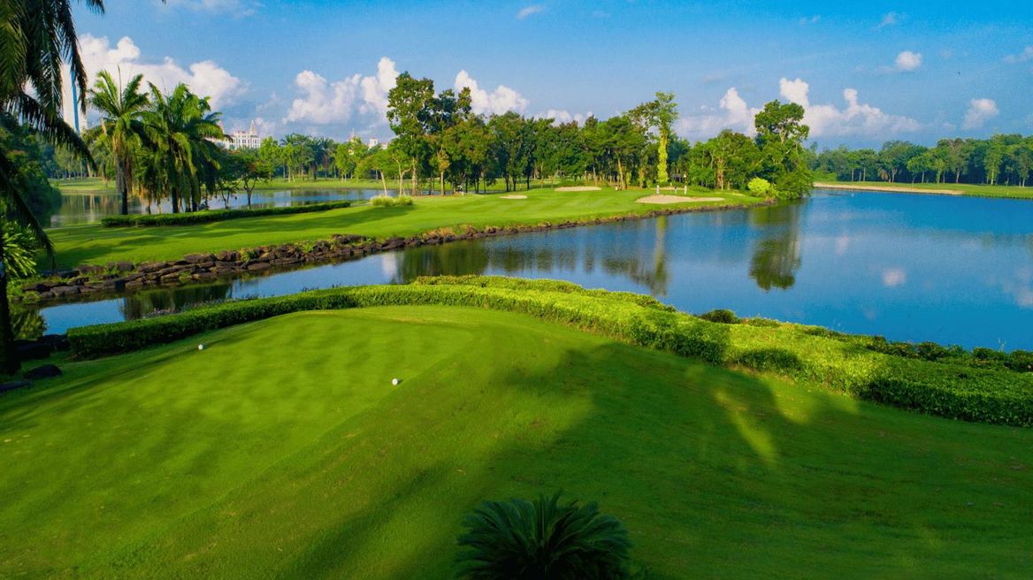 Subhapruek Golf Club (formerly known as Bangna Country Club) was designed by renowned architect Pete Dye and is now considered one of Bangkok's finest golf courses. Located amidst natural surroundings, the course is framed by the tall white tower and golden domes of Assumption University, visible above the tree-lined perimeter. Built on flat, marshy rice fields, Dye has created a visually striking and challenging layout, with palm tree-lined fairways, strategically placed bunkers, large water hazards, and mature tree stands. The course is meticulously maintained year-round, ensuring that the quality of golf matches the excellence of the design, making it a must-play destination in Bangkok.